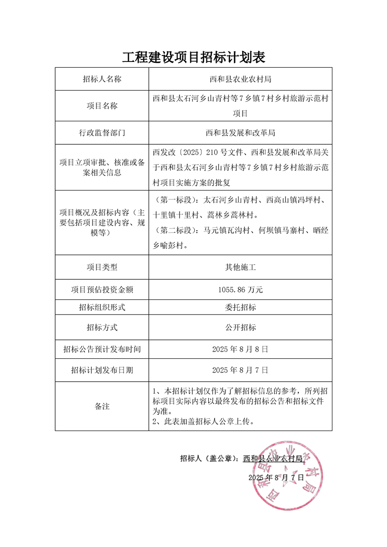 西和縣太石河鄉(xiāng)山青村等7鄉(xiāng)鎮(zhèn)7村鄉(xiāng)村旅游示范村項(xiàng)目