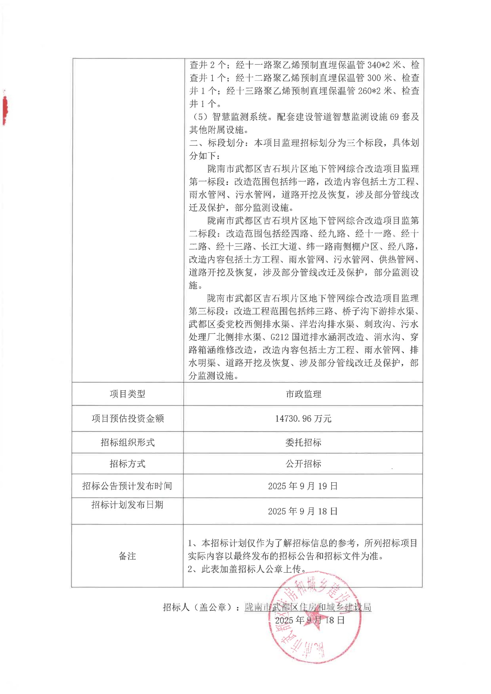 隴南市武都區(qū)吉石壩片區(qū)地下管網(wǎng)綜合改造項目監(jiān)理