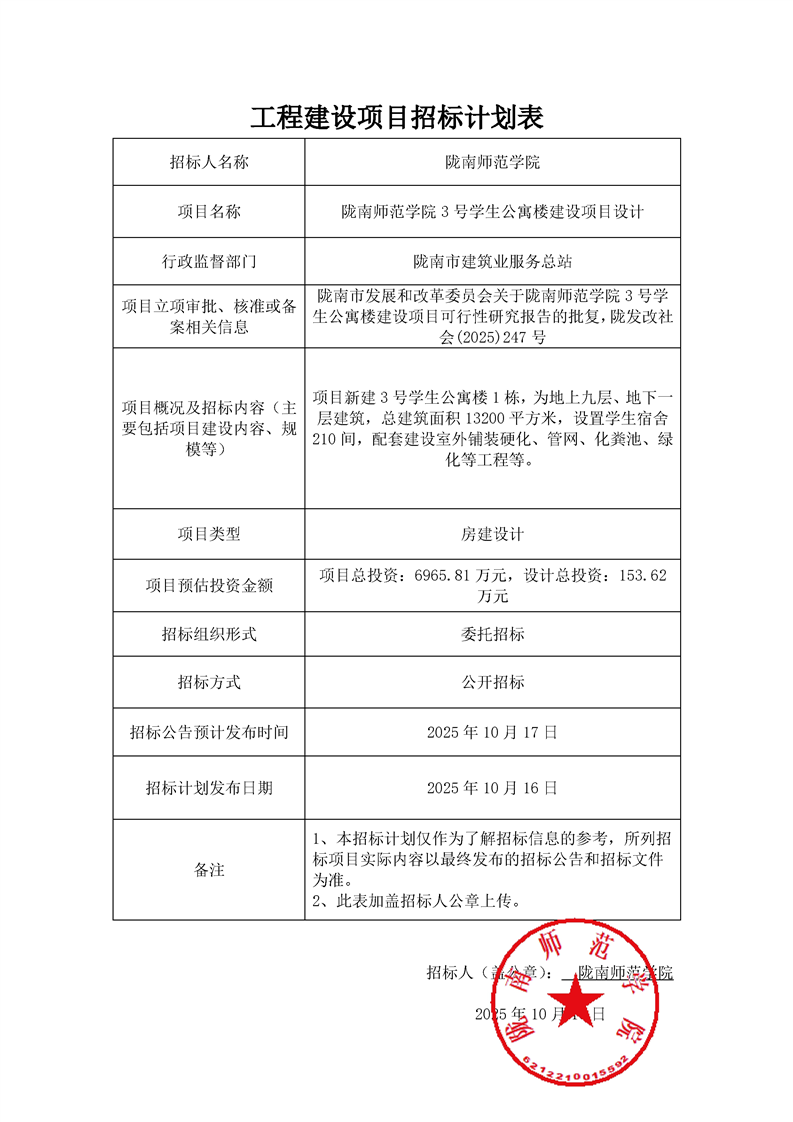 隴南師范學院3號學生公寓樓建設項目設計