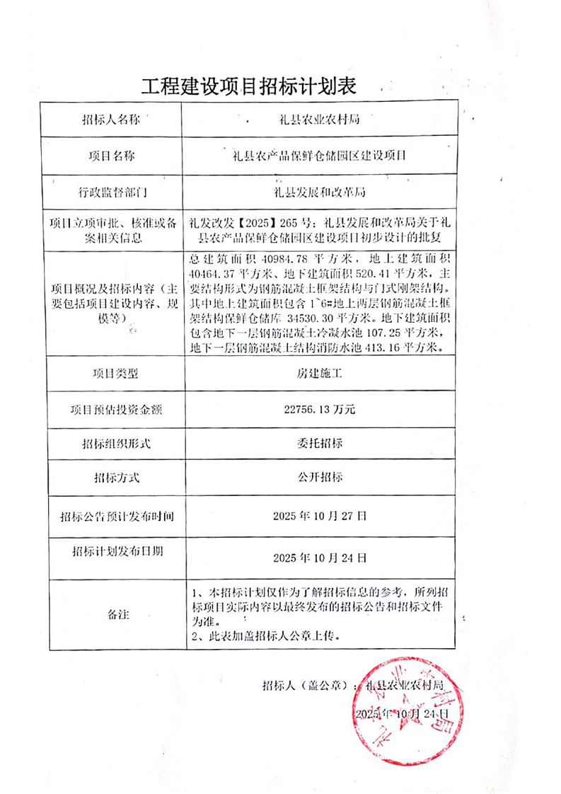 禮縣農(nóng)產(chǎn)品保鮮倉儲園區(qū)建設(shè)項目