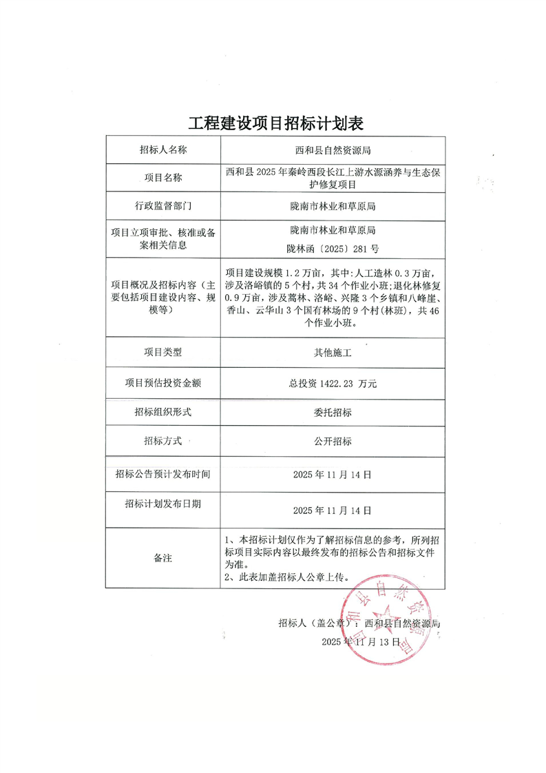 西和縣2025年秦嶺西段長江上游水源涵養(yǎng)與生態(tài)保護(hù)修復(fù)項目