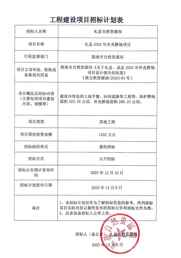 禮縣2025年補充耕地項目