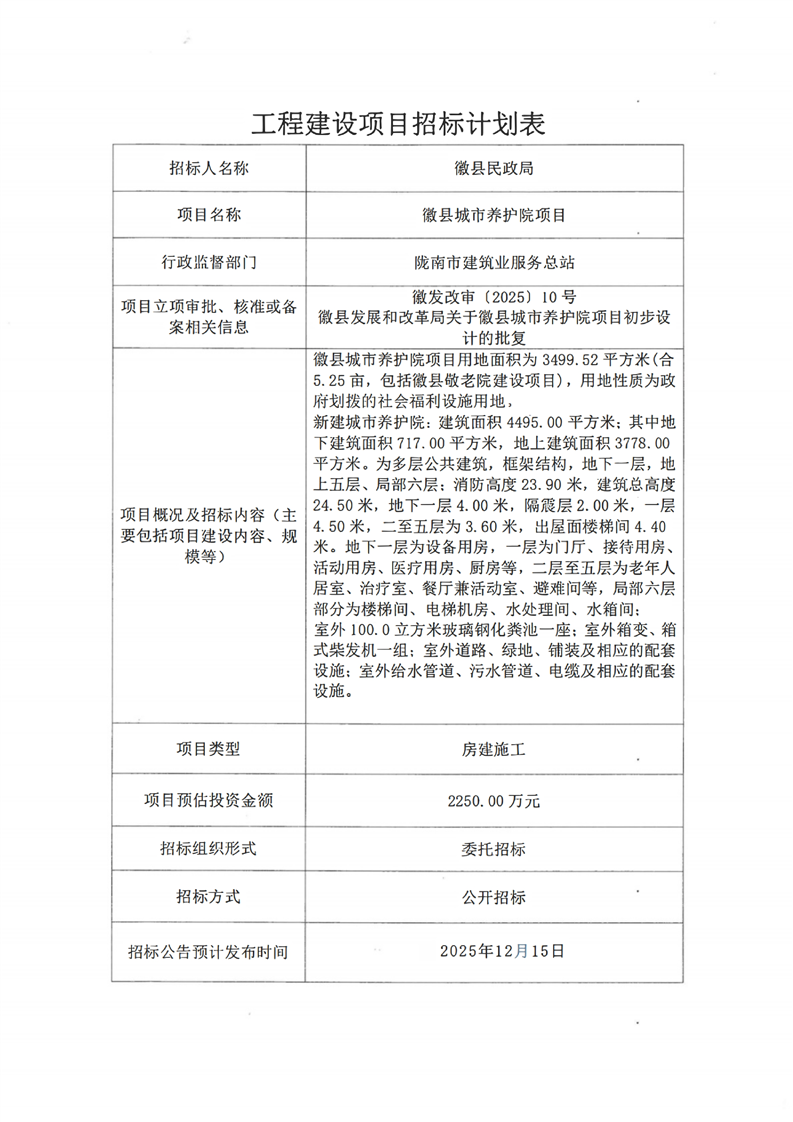 徽縣城市養(yǎng)護(hù)院項(xiàng)目
