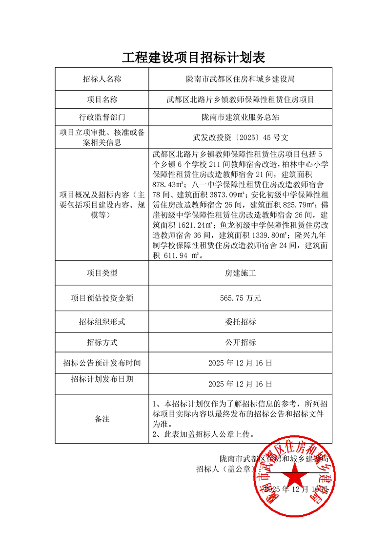 武都區(qū)北路片鄉(xiāng)鎮(zhèn)教師保障性租賃住房項目