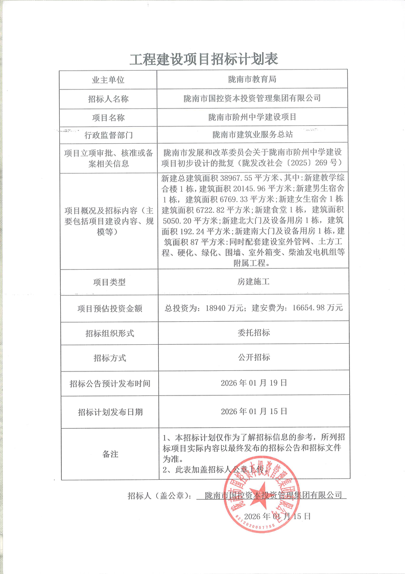 首頁 > 交易信息 > 工程建設(shè) > 項目招標計劃