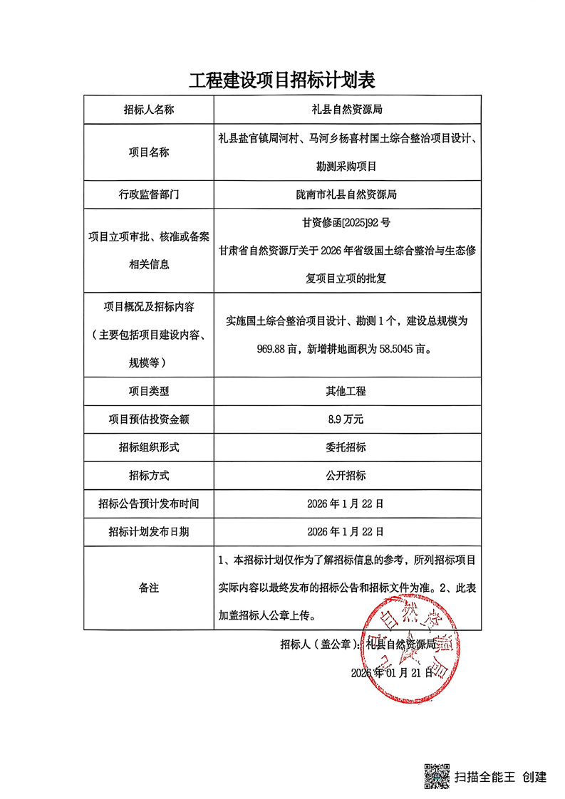 禮縣鹽官鎮(zhèn)周河村、馬河鄉(xiāng)楊喜村國土綜合整治項(xiàng)目設(shè)計、勘測采購項(xiàng)目