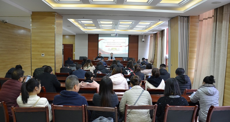 為了進(jìn)一步推動(dòng)本單位廣大黨員干部深入學(xué)習(xí)貫徹黨的十九大精神,用習(xí)近平新時(shí)代中國(guó)特色社會(huì)主義思想武裝頭腦,指導(dǎo)實(shí)踐,推動(dòng)工作。12月6日上午,市公共資源交易中心舉辦學(xué)習(xí)習(xí)近平新時(shí)代中國(guó)特色社會(huì)主義思想專(zhuān)題輔導(dǎo)講座,邀請(qǐng)市委宣講團(tuán)成員、市委講師團(tuán)講師、市新時(shí)代文明實(shí)踐中心理論宣講隊(duì)成員蘇巧慧同志進(jìn)行授課輔導(dǎo)。市公共資源交易中心黨組書(shū)記、主任武文斌主持講座。市公共資源交易中心全體干部職工、部分招標(biāo)代理機(jī)構(gòu)負(fù)責(zé)人以及投標(biāo)單位負(fù)責(zé)人共同參加了學(xué)習(xí)。