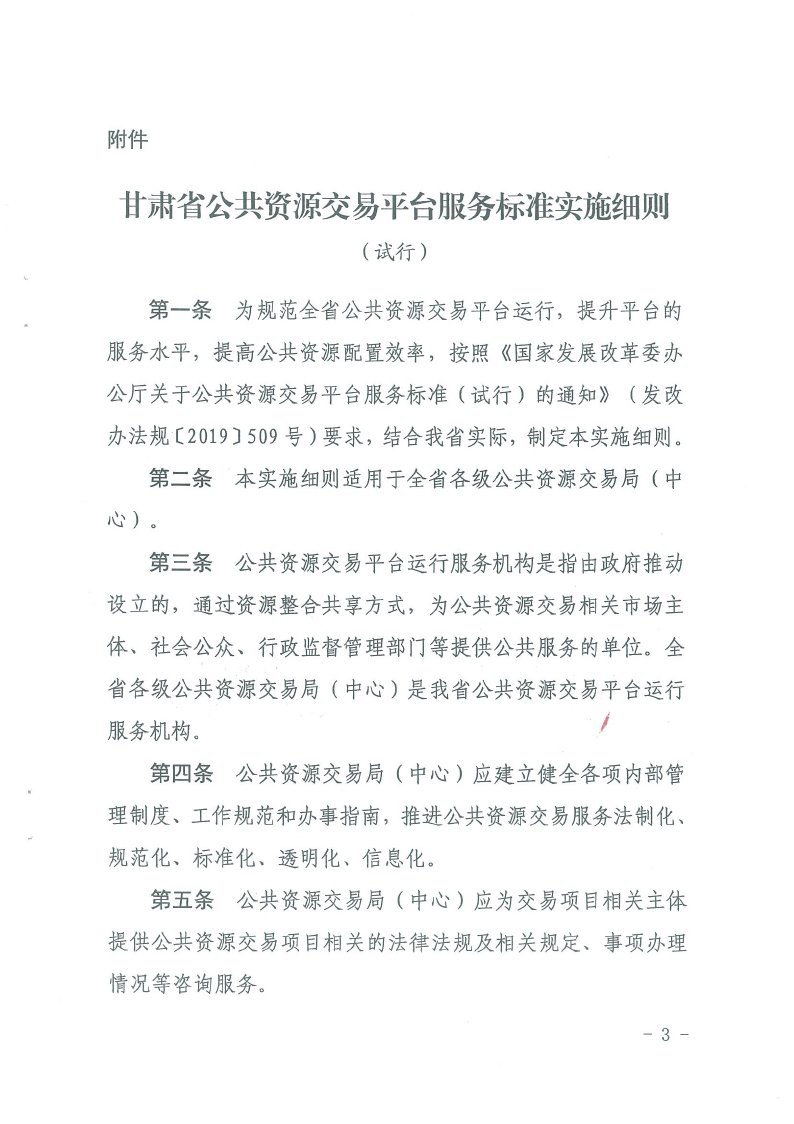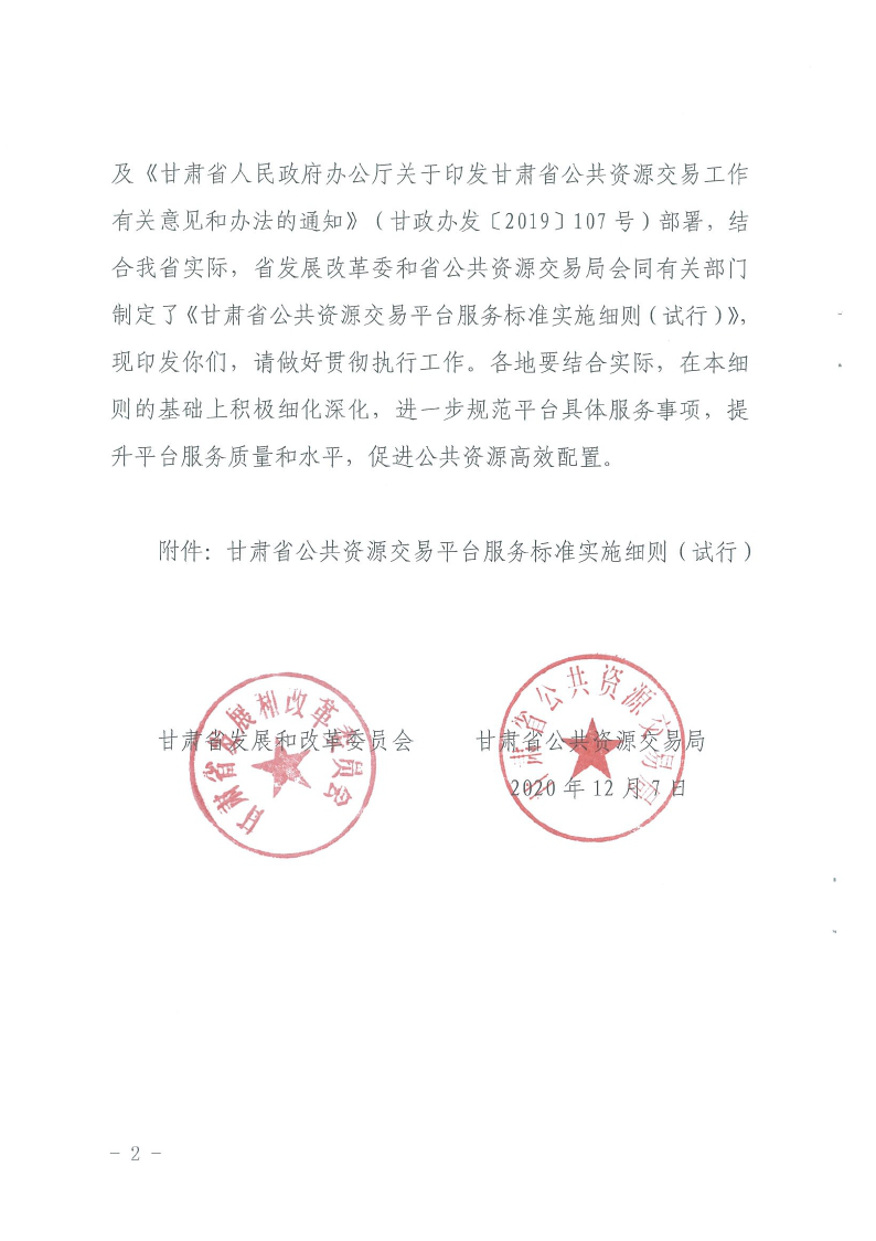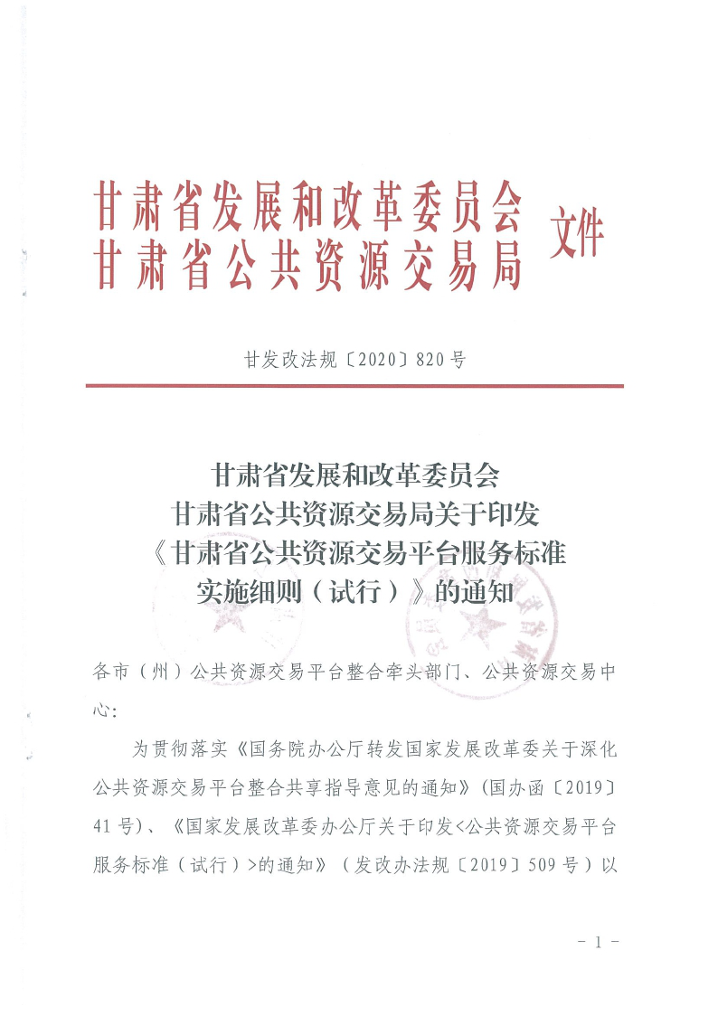 省發(fā)改委省公共資源交易局關(guān)于印發(fā)《甘肅省公共資源交易平臺服務(wù)標準實施細則(試行)》的通知