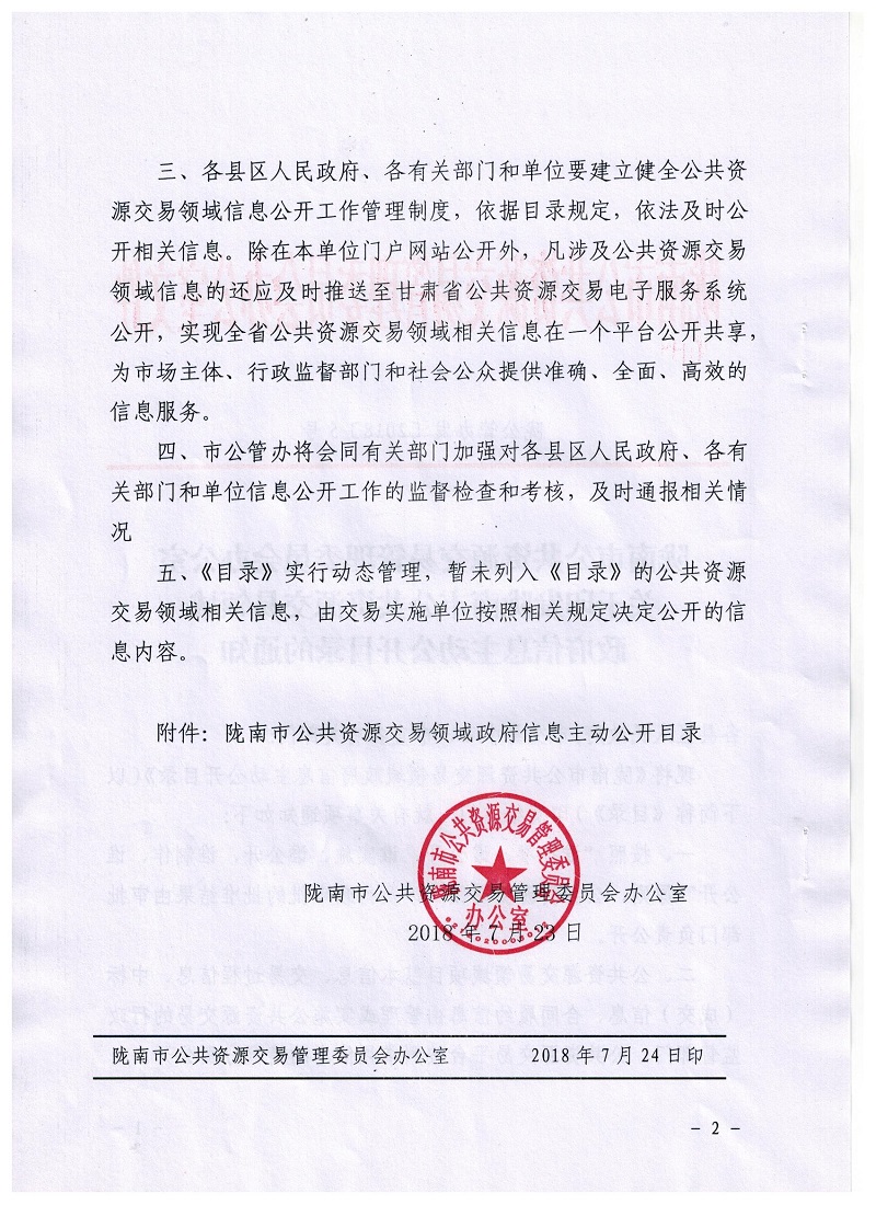 隴南市公共資源交易管理委員會辦公室關(guān)于印發(fā)隴南市公共資源交易領(lǐng)域政府信息主動公開目錄的通知