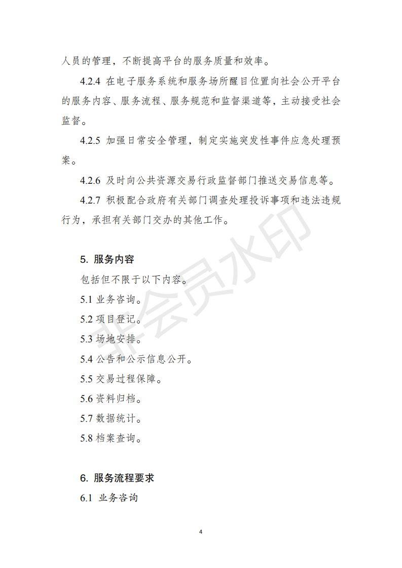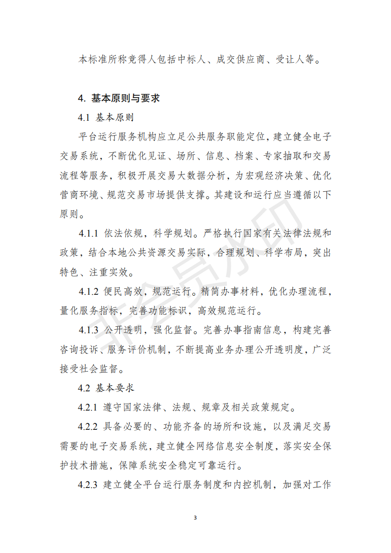 ??一、各地區(qū)應(yīng)根據(jù)有關(guān)法律法規(guī)及《標(biāo)準(zhǔn)》,按照簡化流程、提高效率、公開透明的要求,結(jié)合本地實(shí)際,制定本行政區(qū)域的公共資源交易平臺服務(wù)標(biāo)準(zhǔn),以標(biāo)準(zhǔn)化推進(jìn)全流程電子化、服務(wù)便捷化。